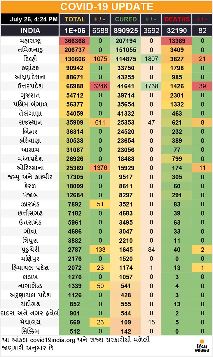 New Delhi. In the last 24 hours, 50 thousand 72 cases have come. 703 people have died. However, the good news is that 37,125 infected people also recovered on Saturday. This is the largest number of patients receiving re-patients in a single day. Earlier on July 23, 33 thousand 326 people have recovered. A total of more than 8 lakh 86 thousand patients have been cured in the country so far. So far, 13.90 lakh cases have been registered. So this is the first death from this disease in Sikkim. These figures are according to the covid19india.org website.