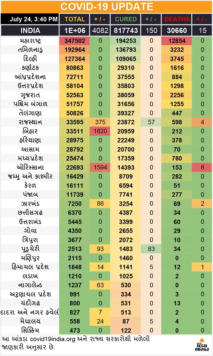 At the same time, Gujarat ranks 12th among the new cases registered in the country in 24 hours, while it ranks eighth in the country in terms of active cases with active patients. Of the active patients, 12,348 patients are on the ventilator, while 12,259 patients are stable. 5,92,123 tests have been conducted in the state so far.
